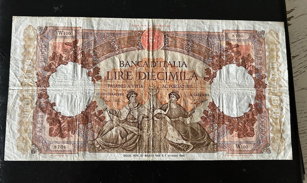 – 10000 Lire Maritime Republics Replacement Series Decree 23/3/1961 Certified BB Harvest.